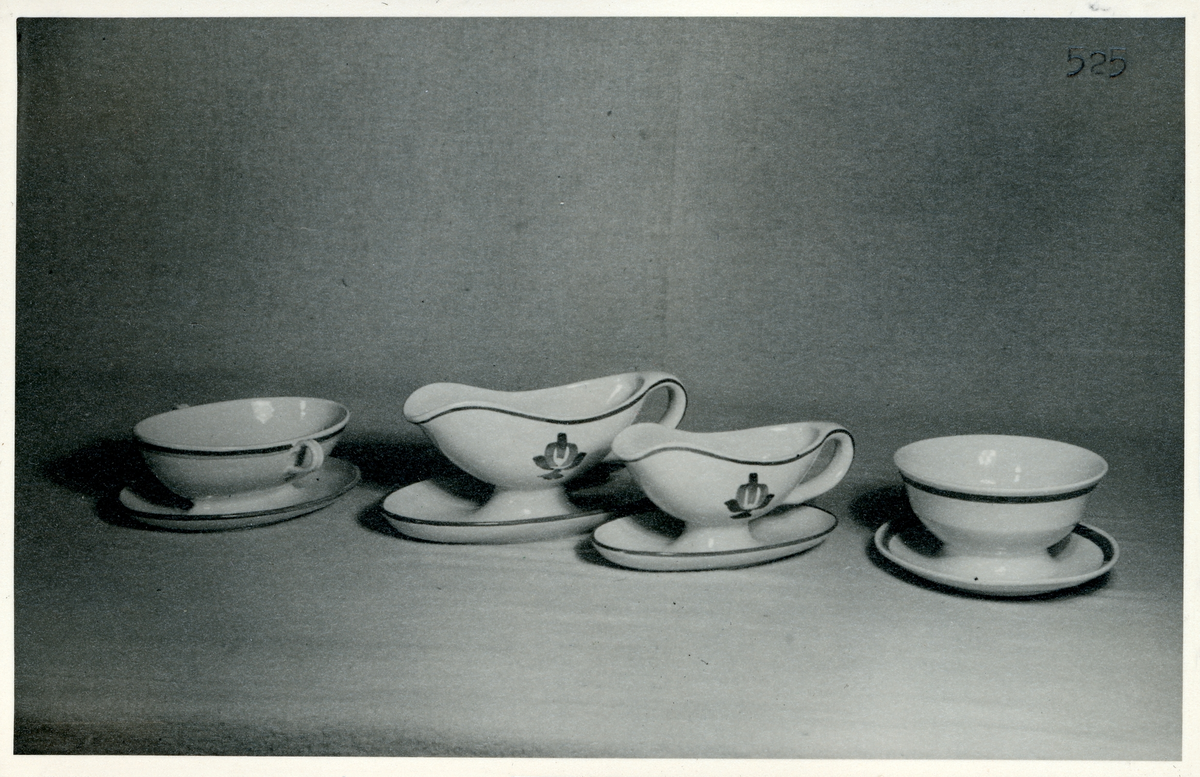Hushållsgods från Bo Fajans, formgivare Allan Ebeling, tidigt 1900-tal. H dekor.