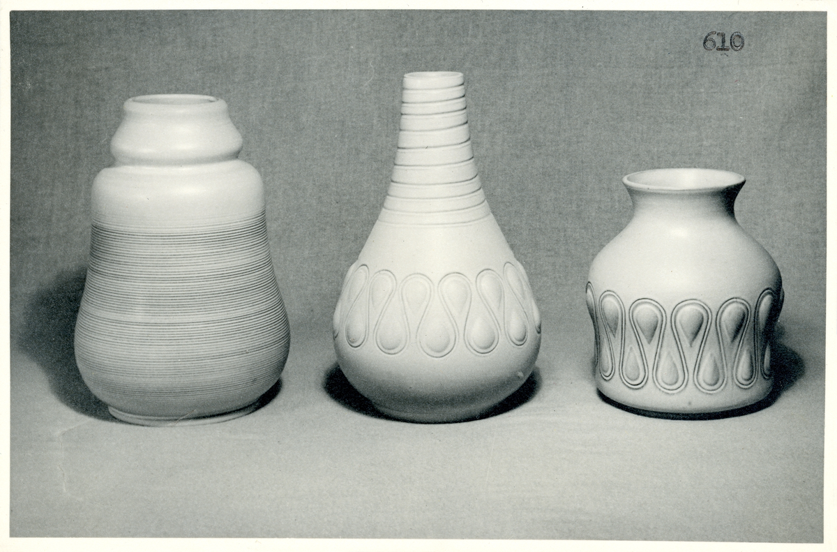 Vaser D203, D193 och D196 från Bo Fajans, formgivare Ewald Dahlskog, 1900-talets mitt.