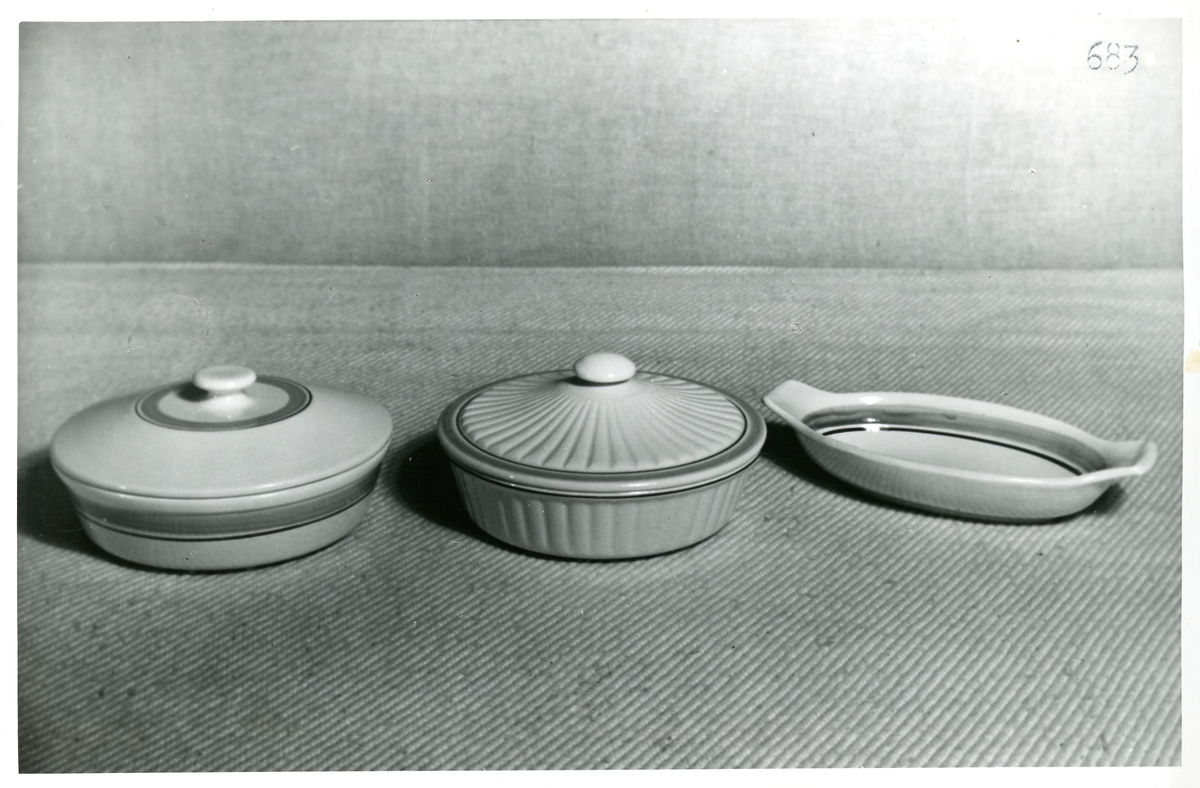 Ungsfast hushållsgods "Termo" från Bo Fajans, 1900-talets mitt. Skålar/formar, dekor "Viva".