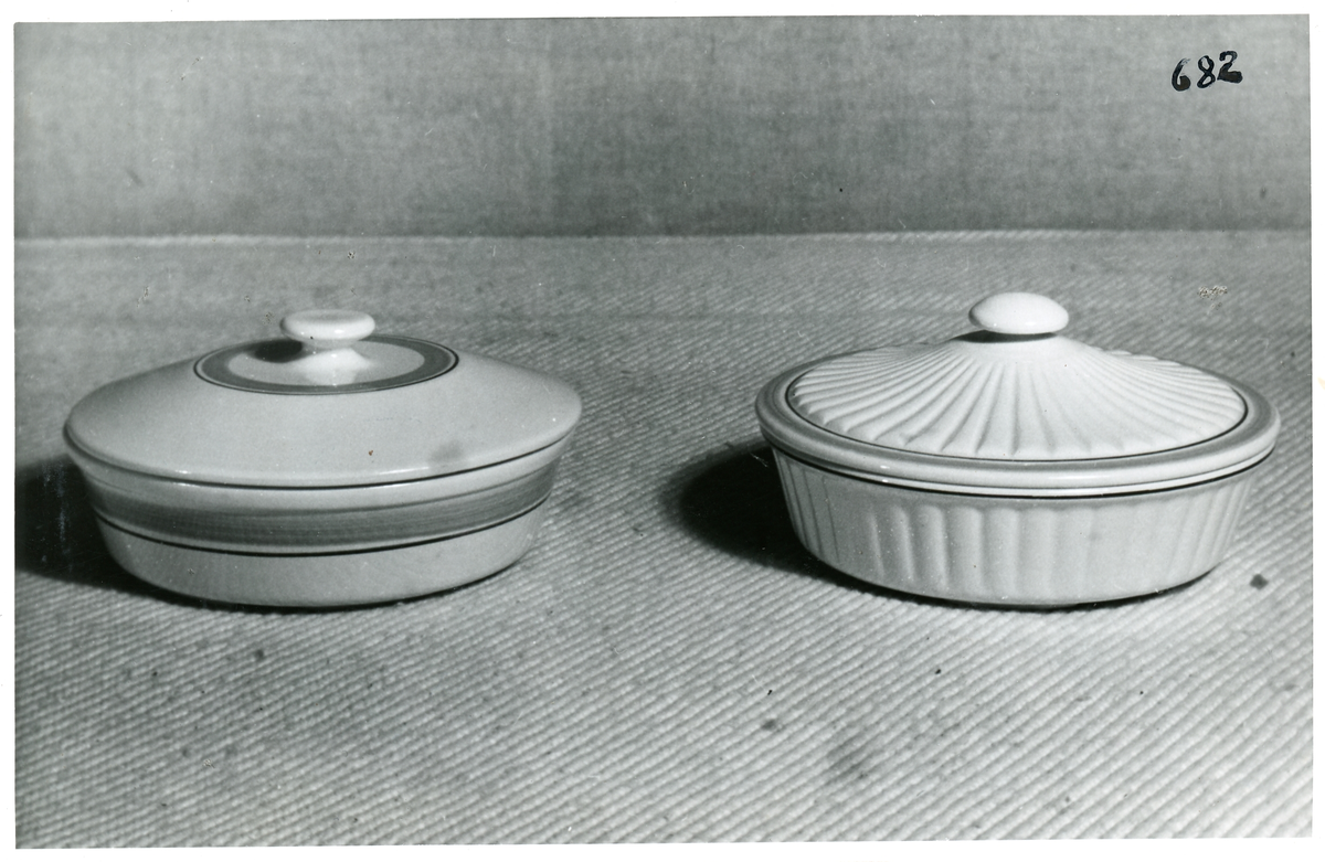 Ungsfast hushållsgods "Termo" från Bo Fajans, 1900-talets mitt. Skålar/formar, dekor "Viva".