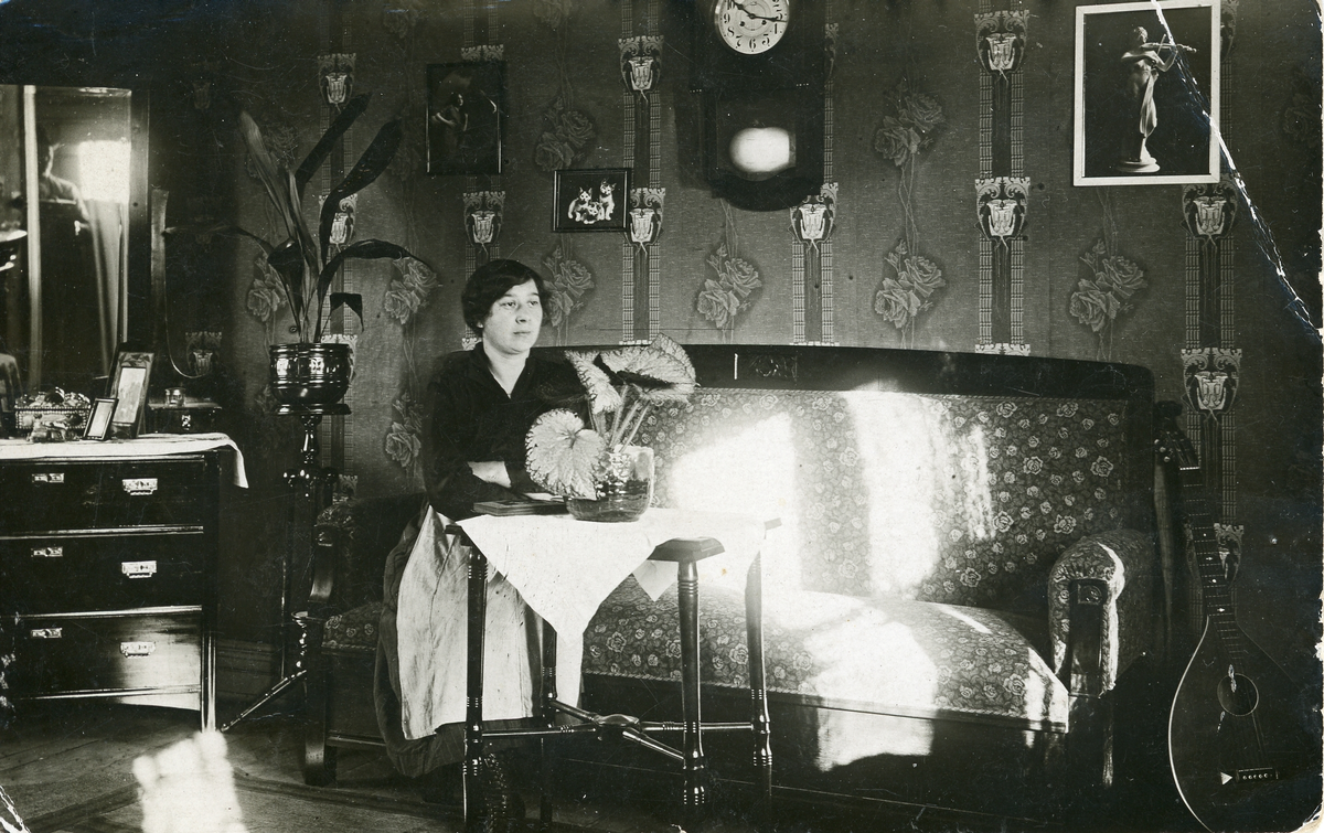 På det här kortet med en kvinna som sitter i en soffa står texten" Vet inte vem det är, men kortet är fint".