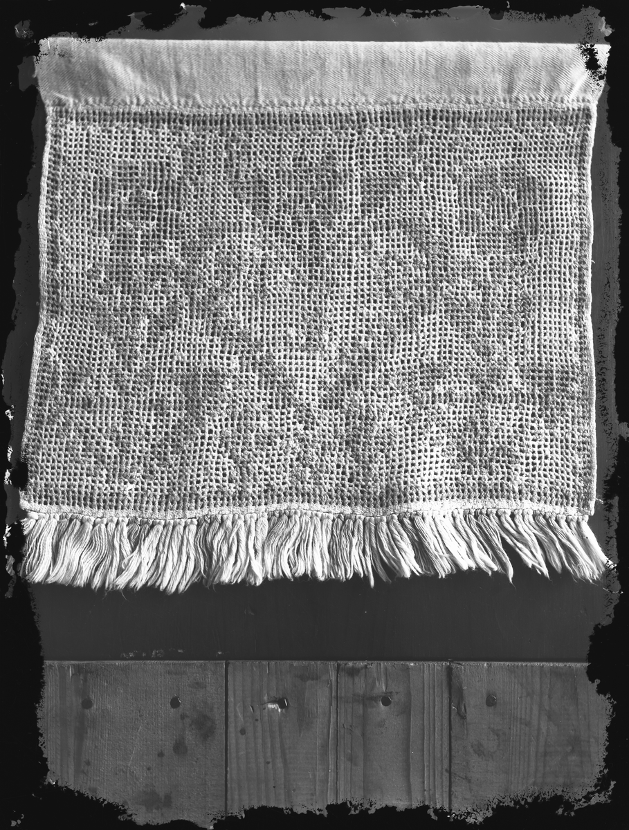 Handkläde broderat i dubbel utdragssöm (näversöm).