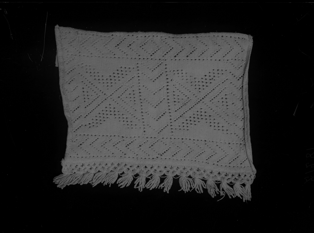 Stickad bård från handkläde, knuten frans.