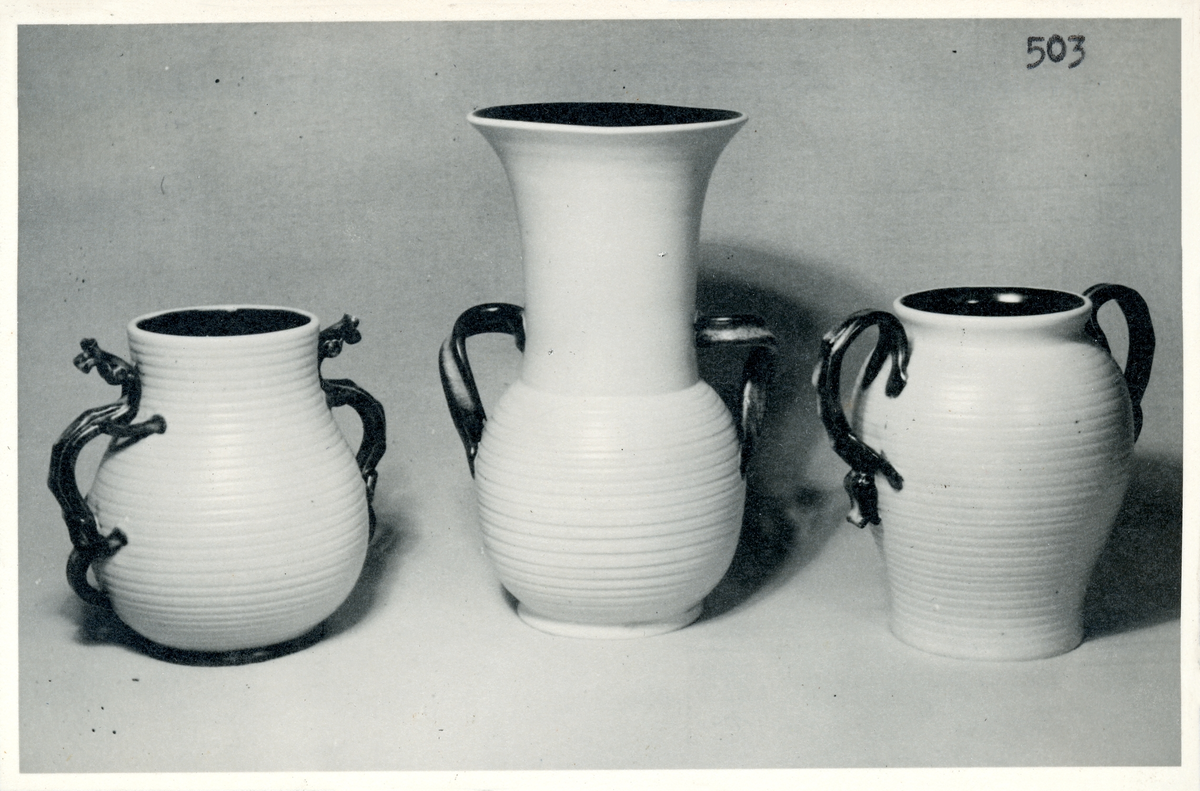 Vas B75, B79 och B74 från Bo Fajans, formgivare Eva Jancke-Björk, 1900-talets mitt. Glasyr 510.