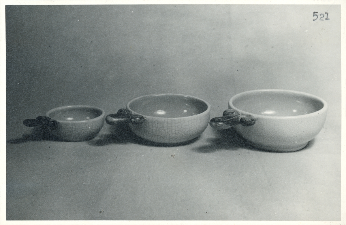 Skål med handtag (4321/1-3) från Bo Fajans, formgivare Eva Jancke-Björk, 1900-talets mitt.