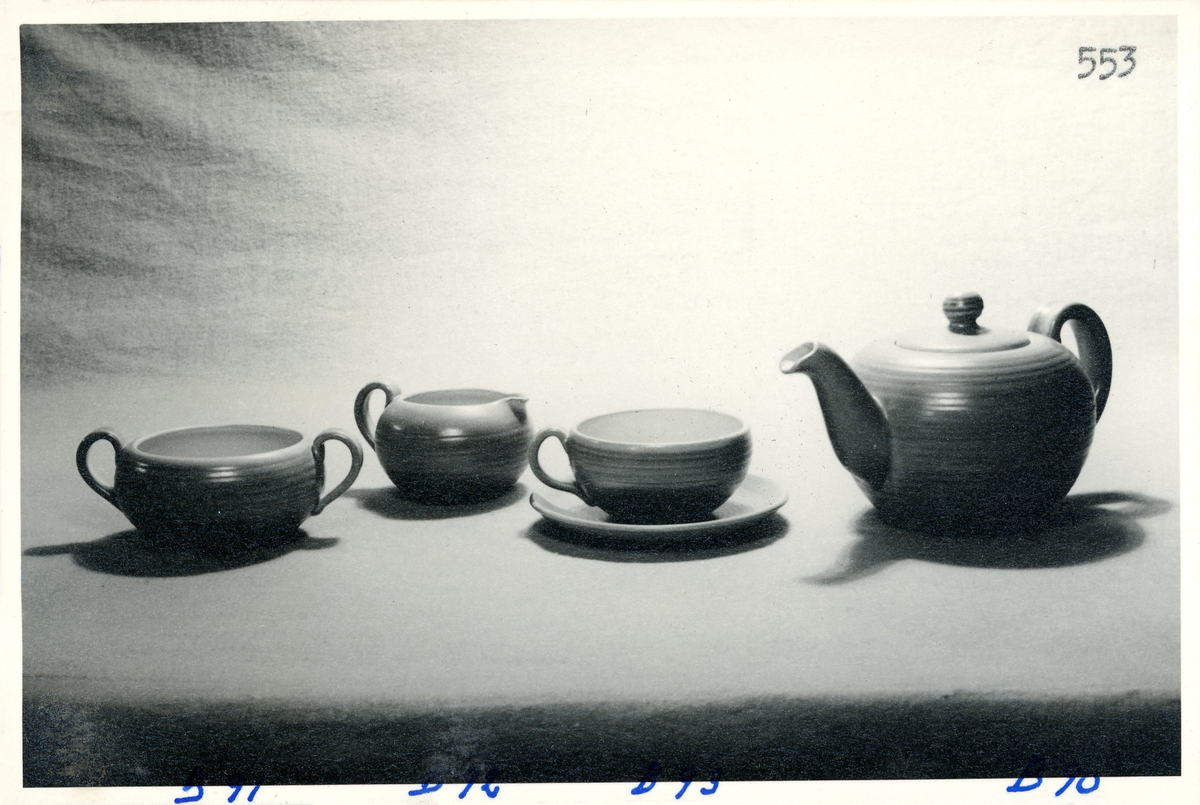 Teservis från Bo Fajans, formgivare Eva Jancke-Björk, 1900-talets mitt.
