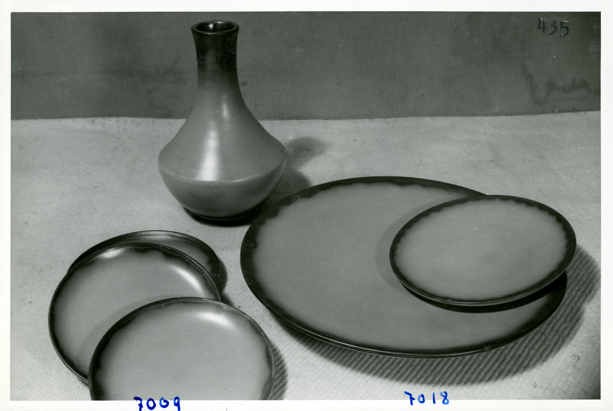 Assietter, vas och fat från Bo Fajans, formgiven bland annat av Ewald Dahlskog, 1900-talets mitt.