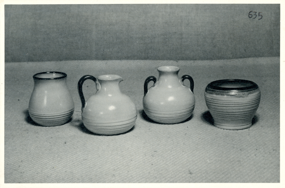 Vaser och ett krus från Bo Fajans, formgivare Eva Jancke-Björk, 1900-talets mitt.
