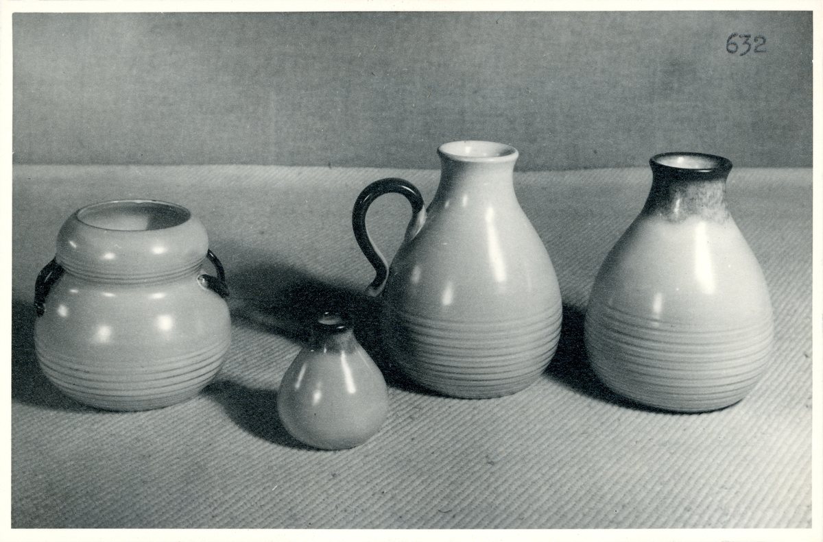 Vaser och en kruka från Bo Fajans, formgivare Eva Jancke-Björk, 1900-talets mitt.