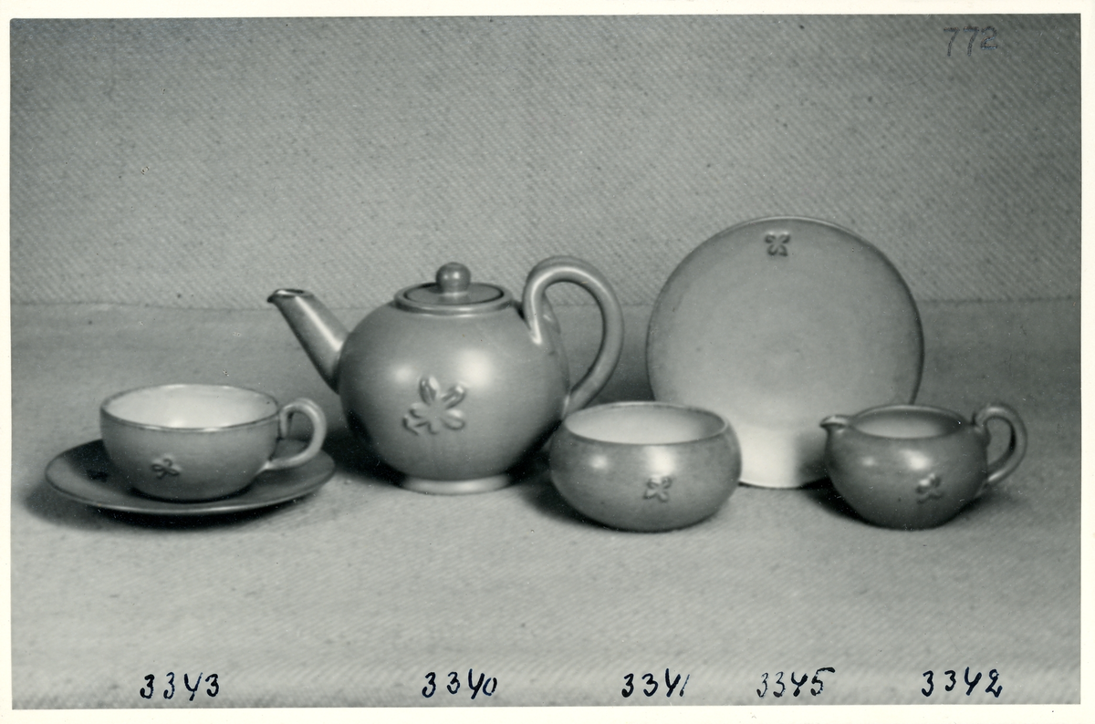 Teservis från Bo Fajans, formgivna av Eva Jancke-Björk, 1900-talets mitt.
