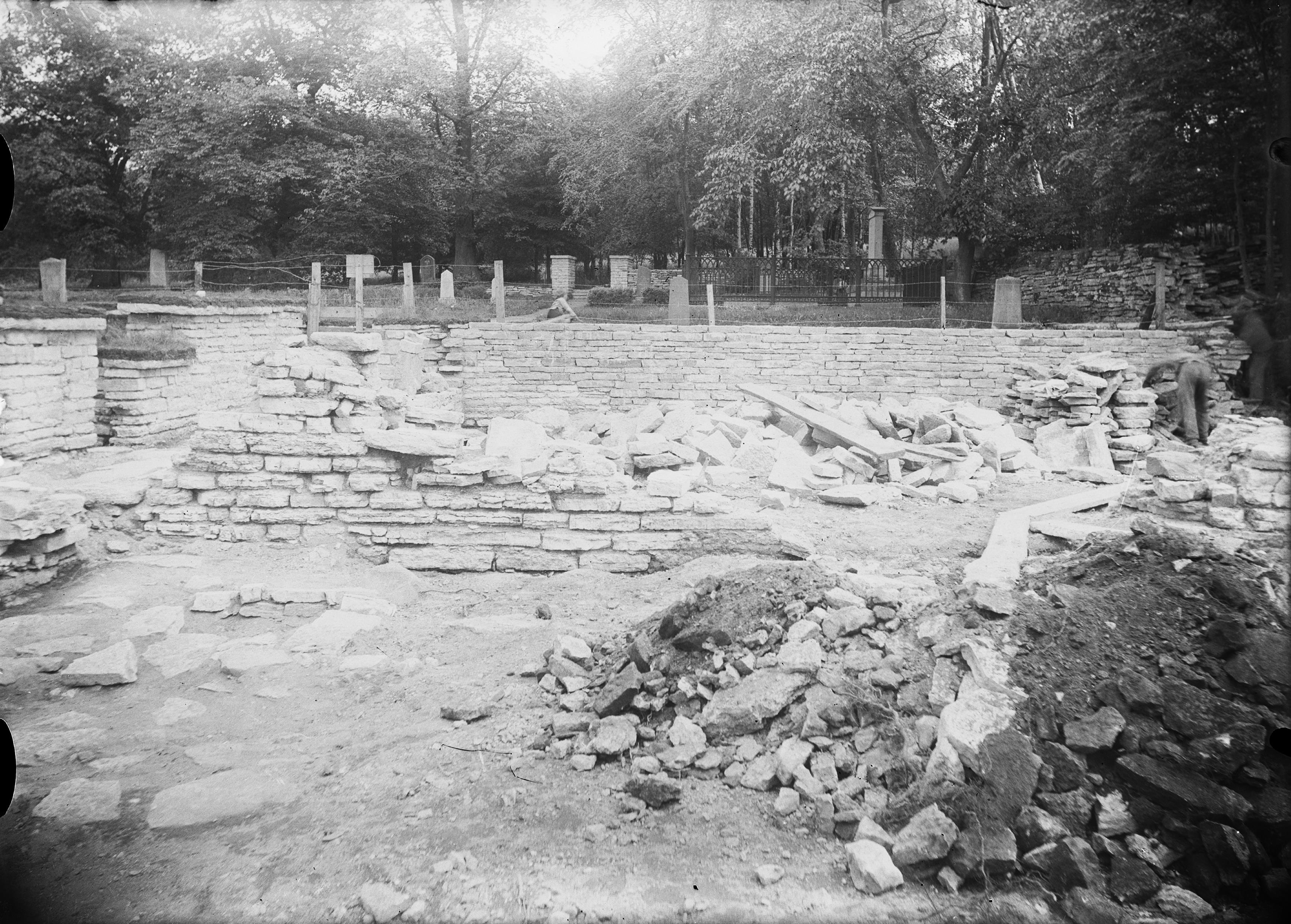 Östra längans sydligaste rum, munkarnas samlingsrum, norra delen av västra muren. Från väster.