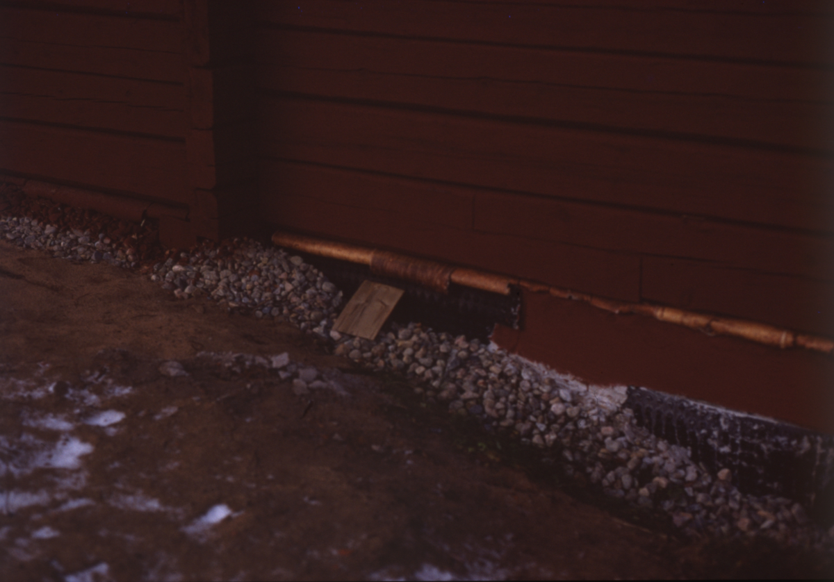 Brattskuruvallen 1989. Nytt hus med grund, näver. Alfta sn Ovanåker kn.