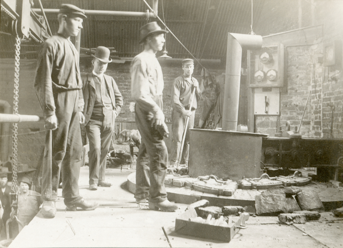 Titel: Arbetare vid den Kjellinska induktionsugnen i Gysinge elektrostålverk.