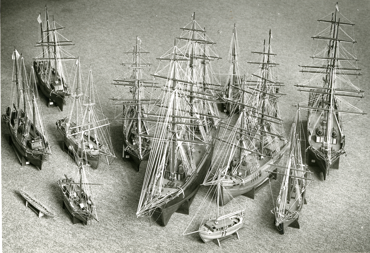Titel: Flera modellbyggen av fartyg i olika storlekar.