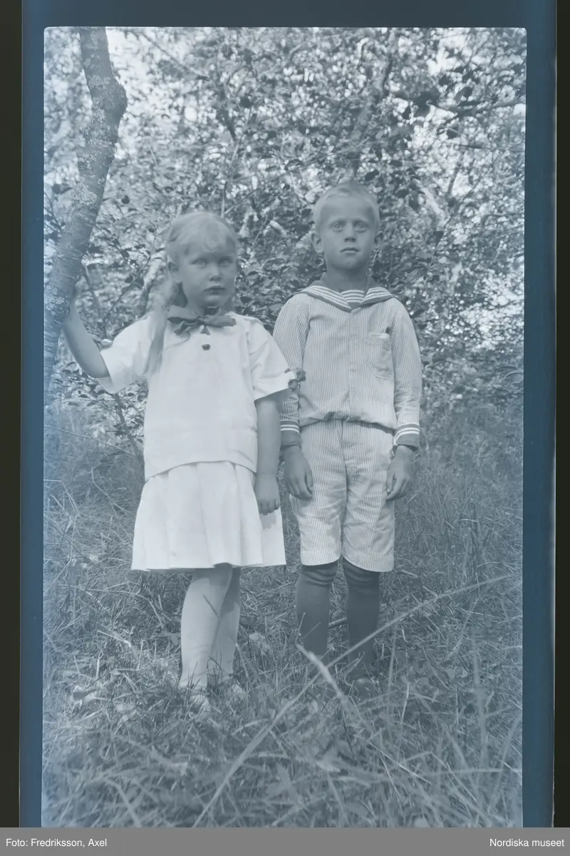Ett par syskon porträtterade utomhus.