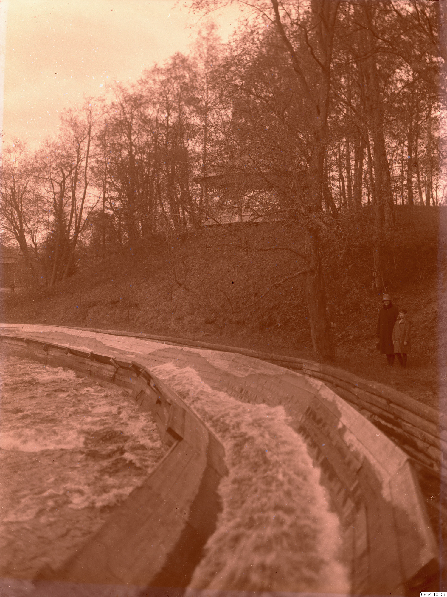 Kvinna och barn, mamma och dotter? Vid forsränna. Samma personer med samma kläder som 0964.10700.