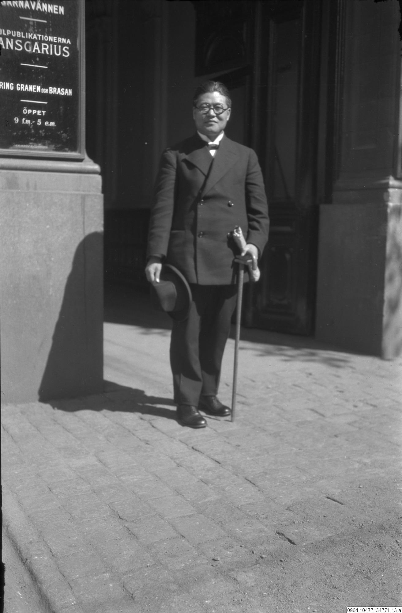 Man med glasögon och käpp. På vägen kan man läsa "Julpublikationerna, Ansgarius, Granen och brasan".