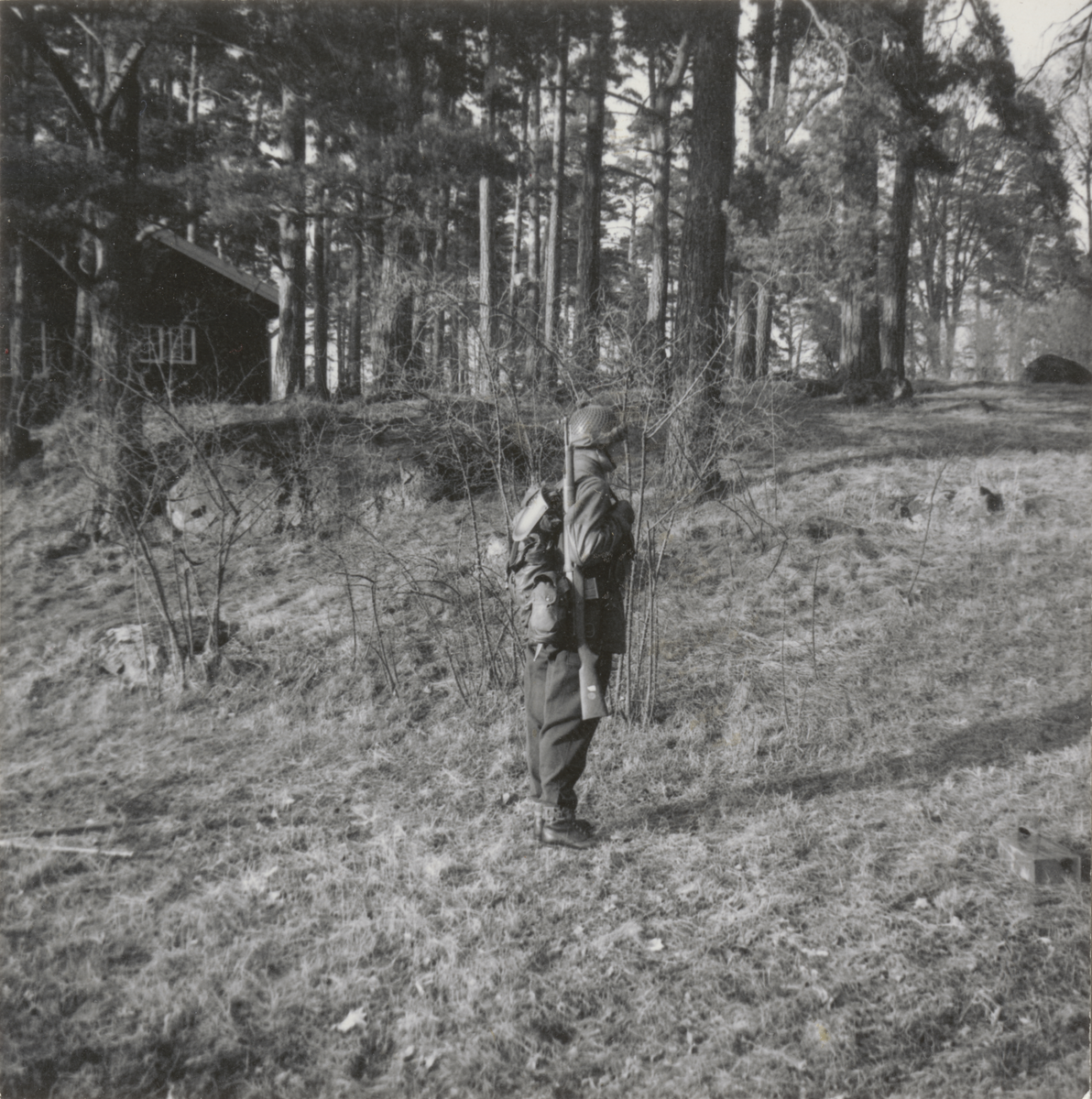 Titel: Infanterist i fältuniform m/1958 med automatgevär ag m/1942, Livgrenadjärregementet I 4.