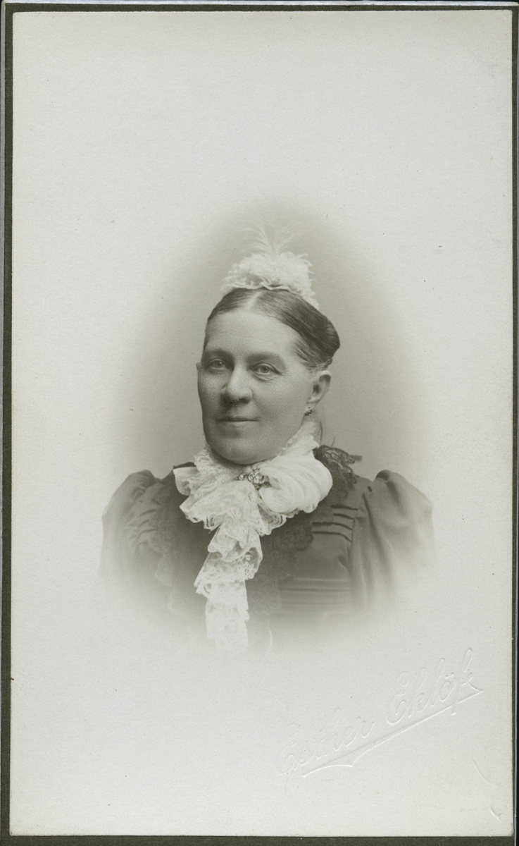Porträtt av Kristine Nilsson f. Trolin? (enligt svårtydd text baksida kort).