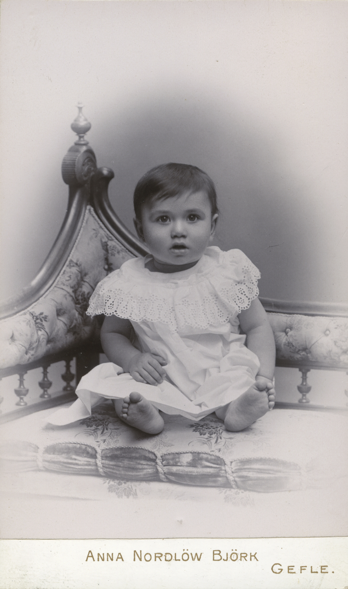 Barnporträtt av .... Almas lilla flicka (väldigt svårtydd text på baksida kort).