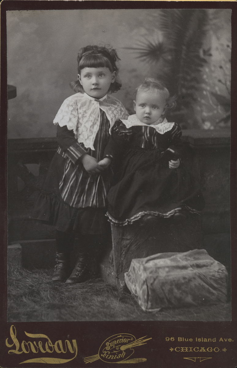 Porträtt av barnen Bäcklin (enligt text baksida kort).