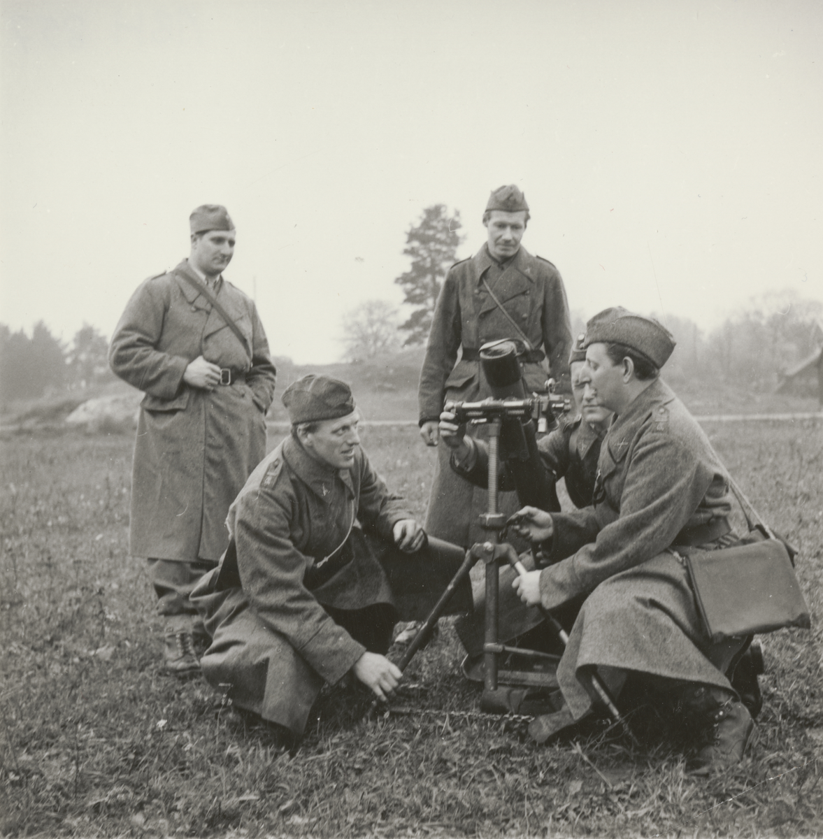 Soldater riktar in en 8 cm granatkastare m/1929.