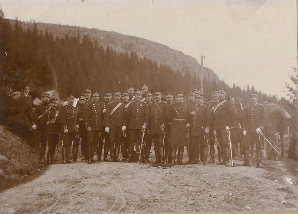 Grupp officerare poserar framför ett berg i Örnsköldsvikstrakten.