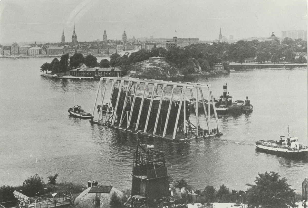 Titel: Nybärgade regalskeppet Wasa bogseras på plats till Djurgården.