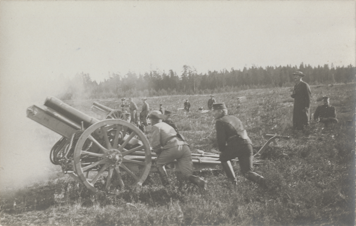 Titel: Skjutning med 15 cm haubits m/1902 på Marma skjutfält 1909