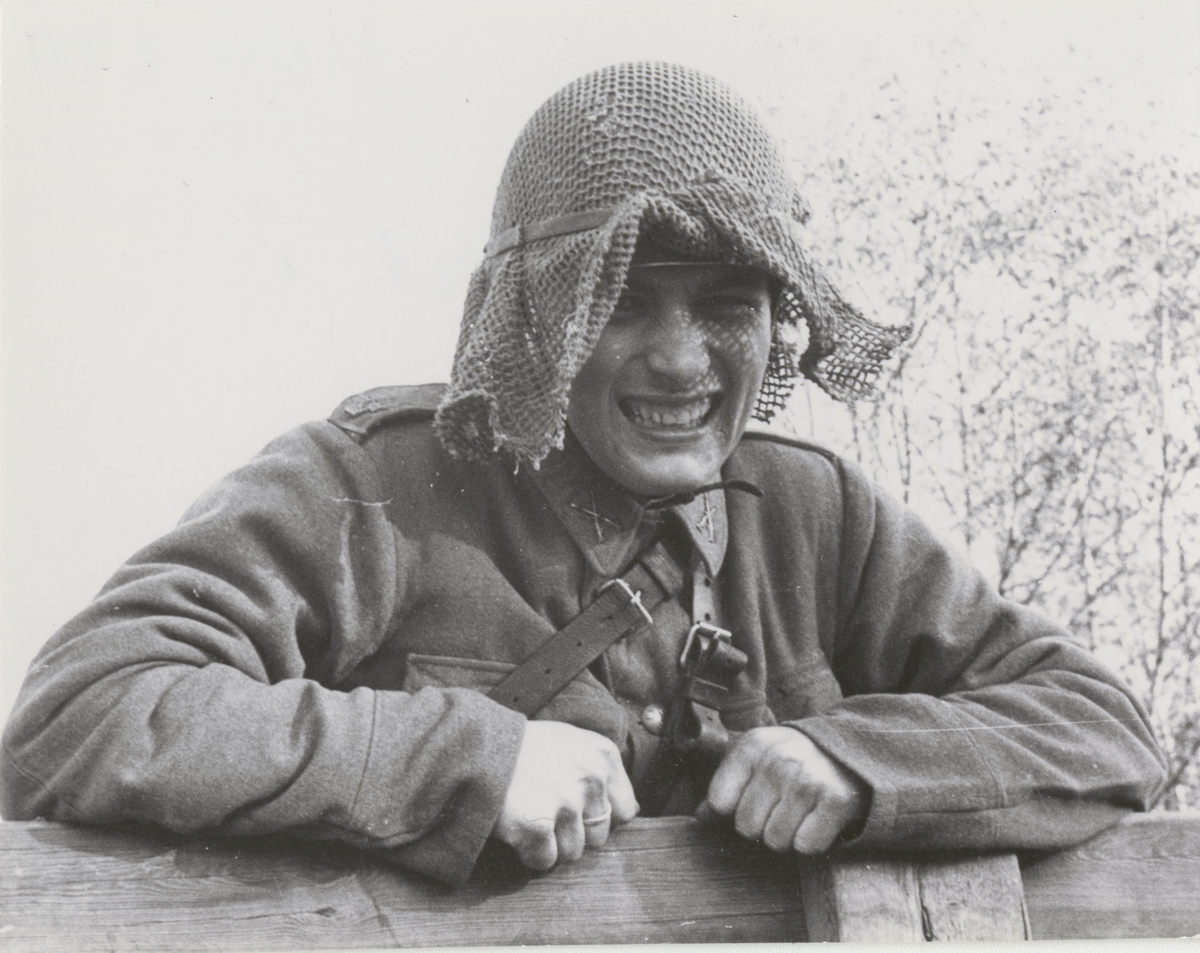 Titel: Livregementets grenadjärer I 3. Soldat klättrar över planket i gamla mingården.