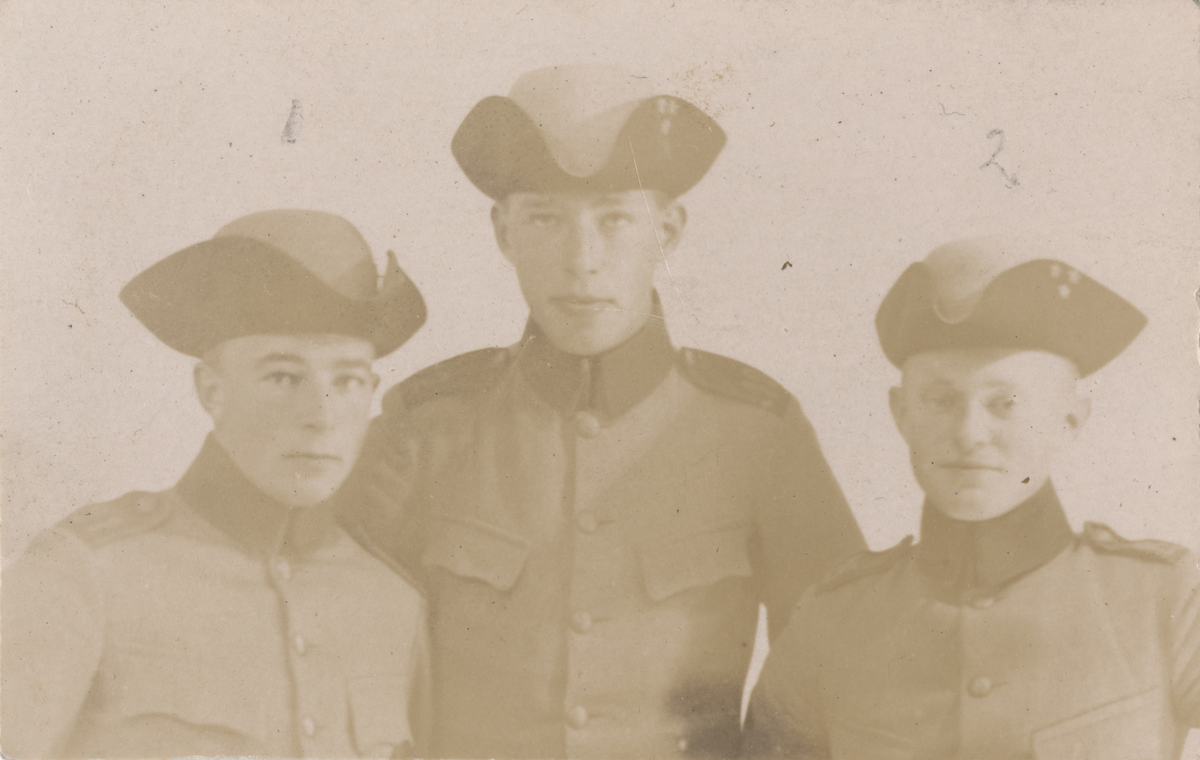 Tre män i uniform m/1910: Folin, Blondell och Karlson.