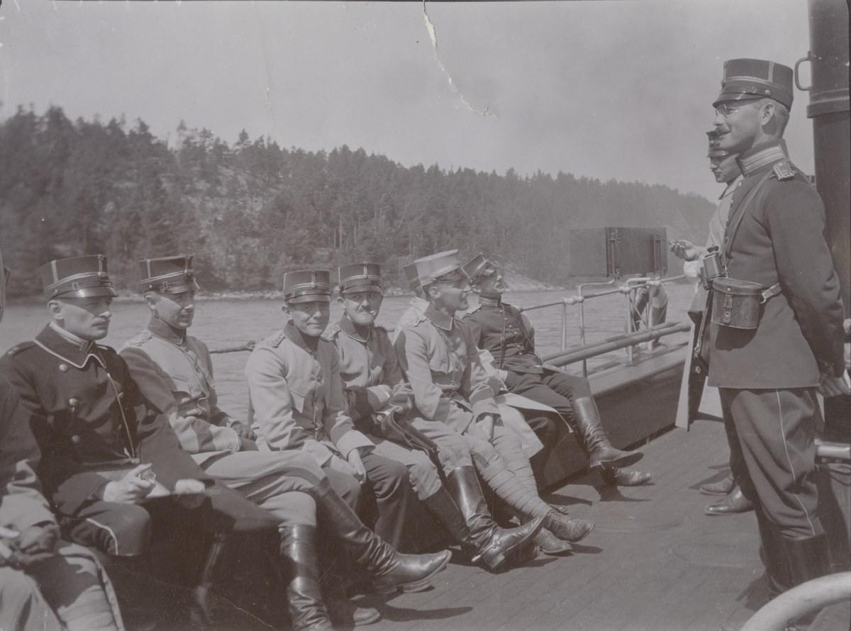 Titel: Utflykt med Krigshögskolan på ångbåt i uniform m/1910.