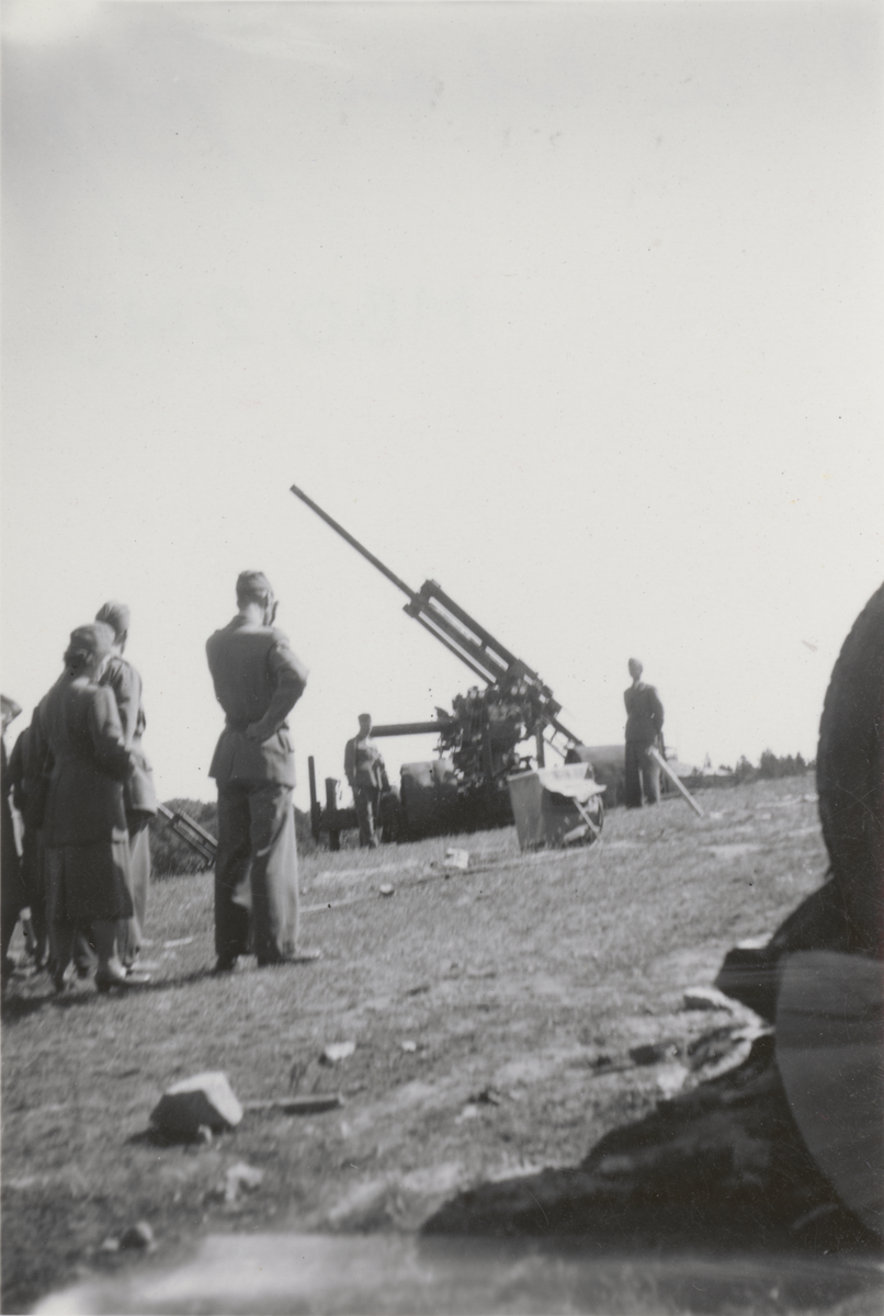 7,5 cm luftvärnskanon m/1937 med servis på fält, uniform m/1939.