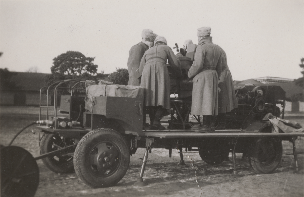 Centralinstrument på vagn, omgiven av män i vinteruniform.