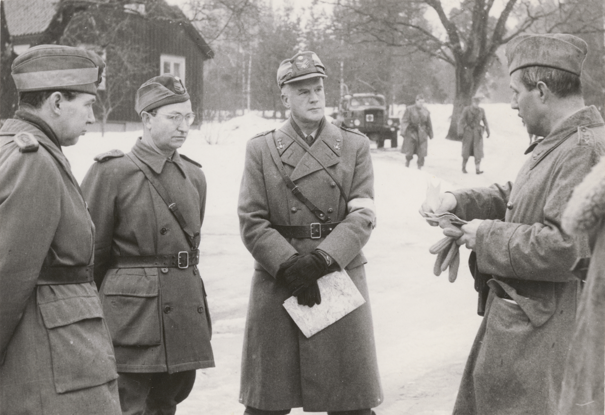 Titel: Officerare samtalar på fält.