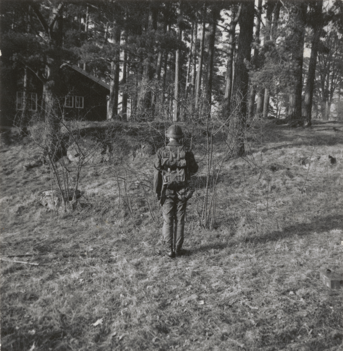 Infanterist i fältuniform med kulsprutepistol m/1945, Livgrenadjärregementet I 4.