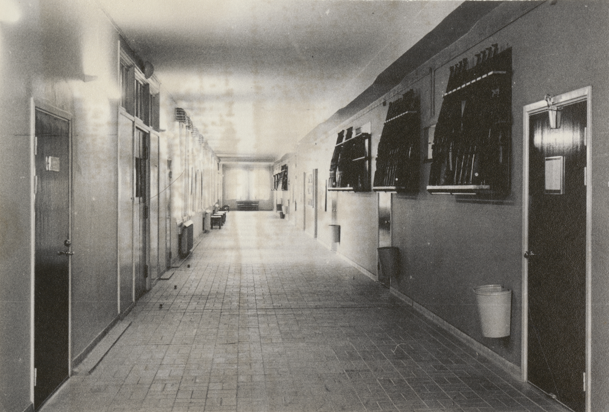 Livregementets grenadjärer I 3, kompanikorridor med gevärsställ.