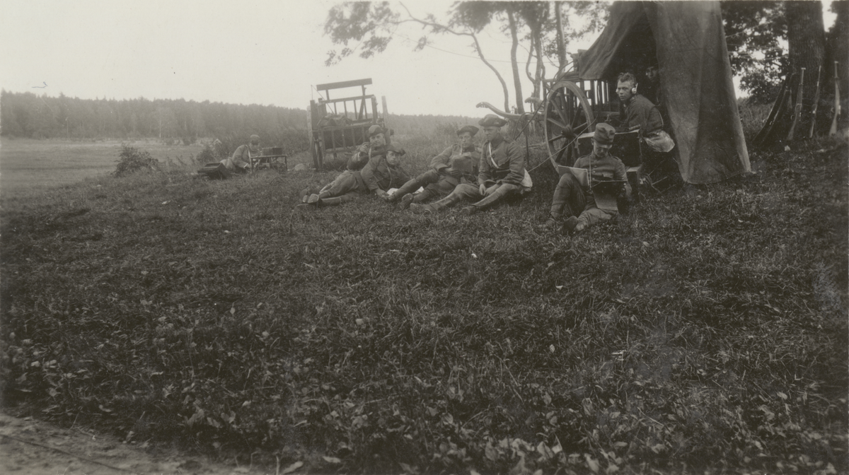 Signalister i fält med 150 W fältradio, uniform m/1910.