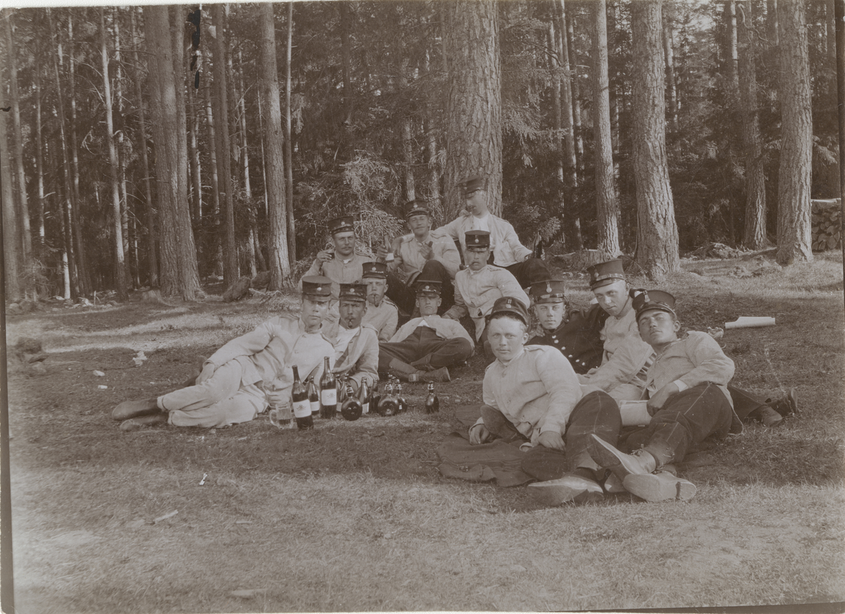 Titel: Upplands regemente I 19, Polacksbacken Uppsala, rast bland träd.