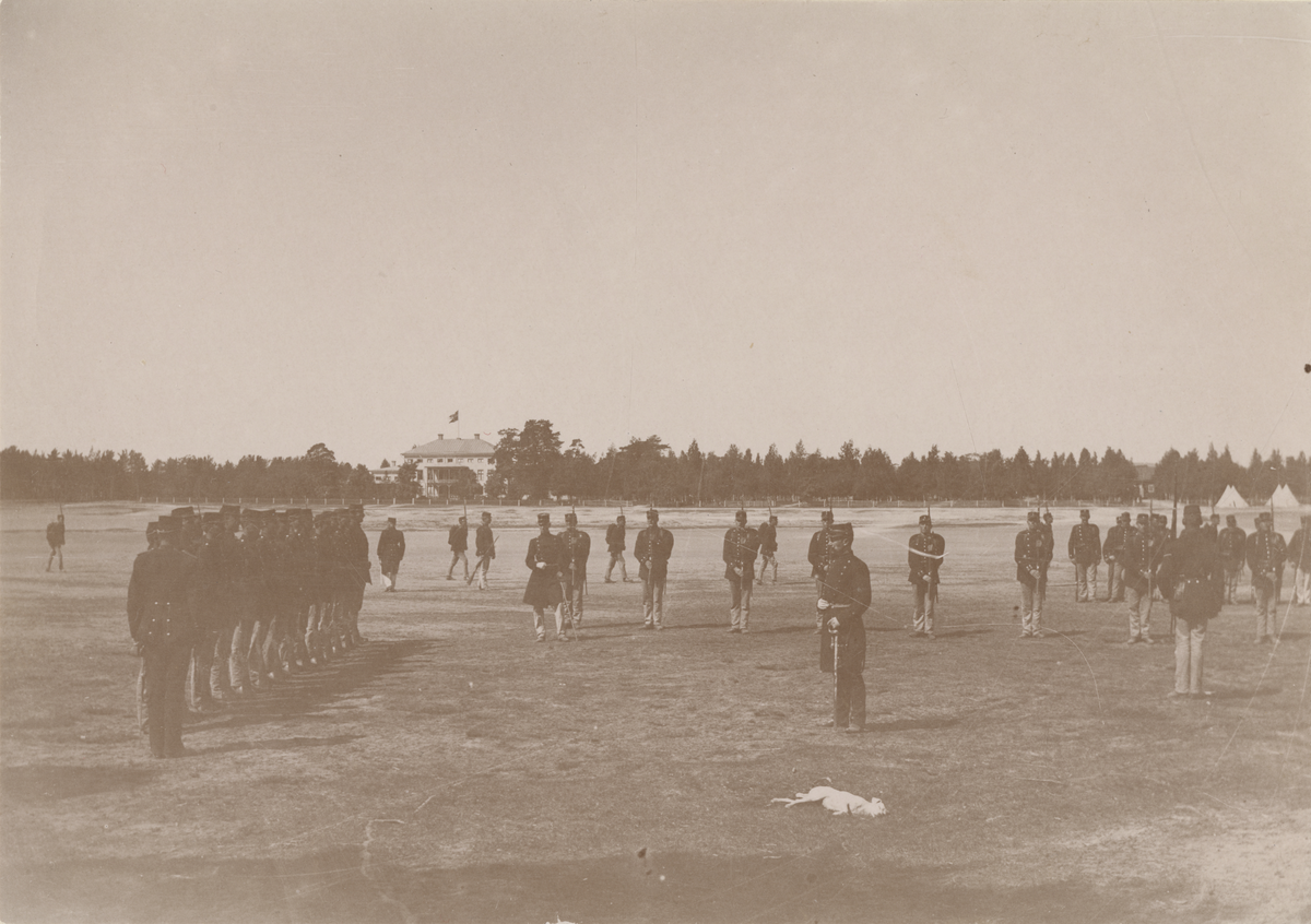 Titel: Hälsinge regemente I 14 Mohed. Exercis på fältet.
