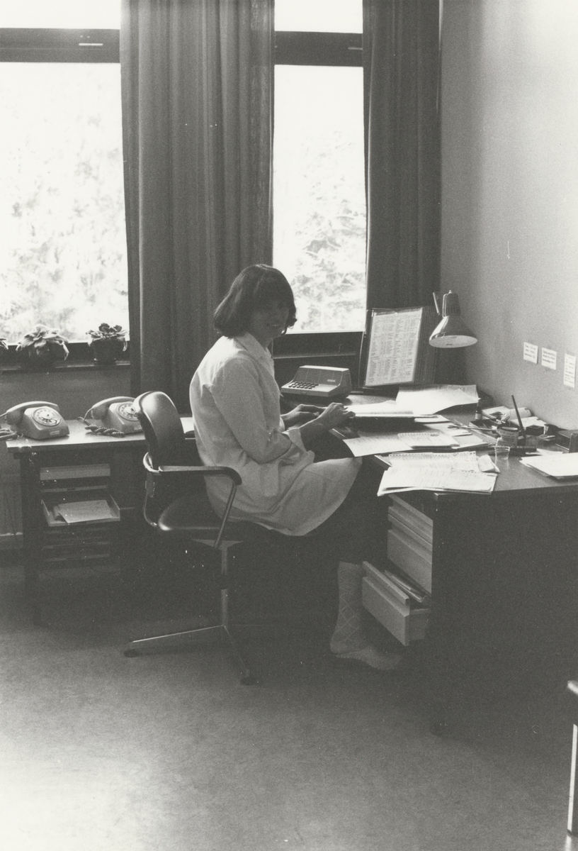 Svea Livgardes sjukhus. Expeditionen på vårdavdelningen. Foto av G. Norregårdh, 1975.