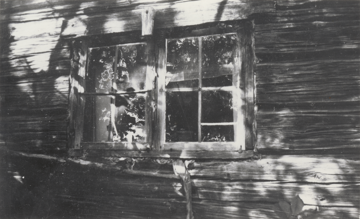 Fönster på hus delvis byggt av timmer från en 1500-talsgård.