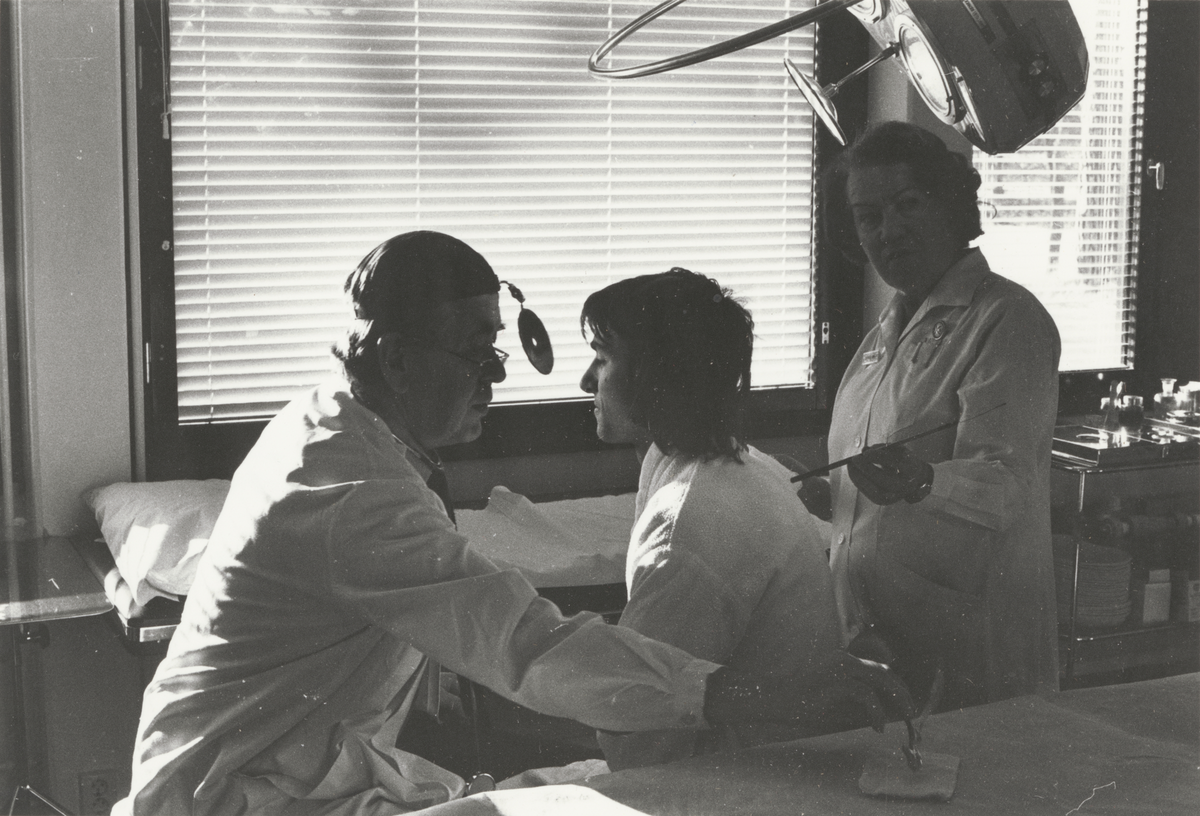Svea Livgardes sjukhus. Regementsläkaren Dr. B. Lagergréen vårdar en värnpliktig.
