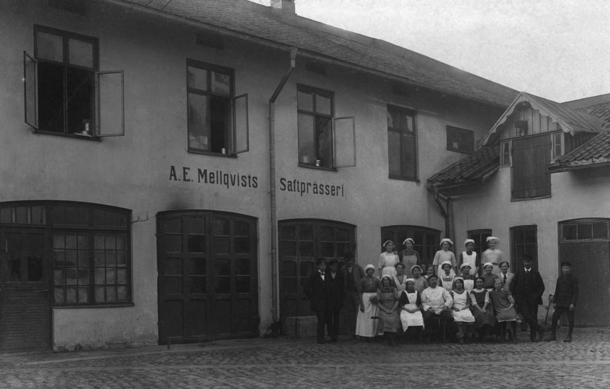 Mellqvists konfektyr, saft- och syltfabrik på en bild från 1900-talets början. När verksamheten expanderade byggdes den fastighet vid Herrhagsparken som senare övertogs av Bergsons textilfabrik år 1925.