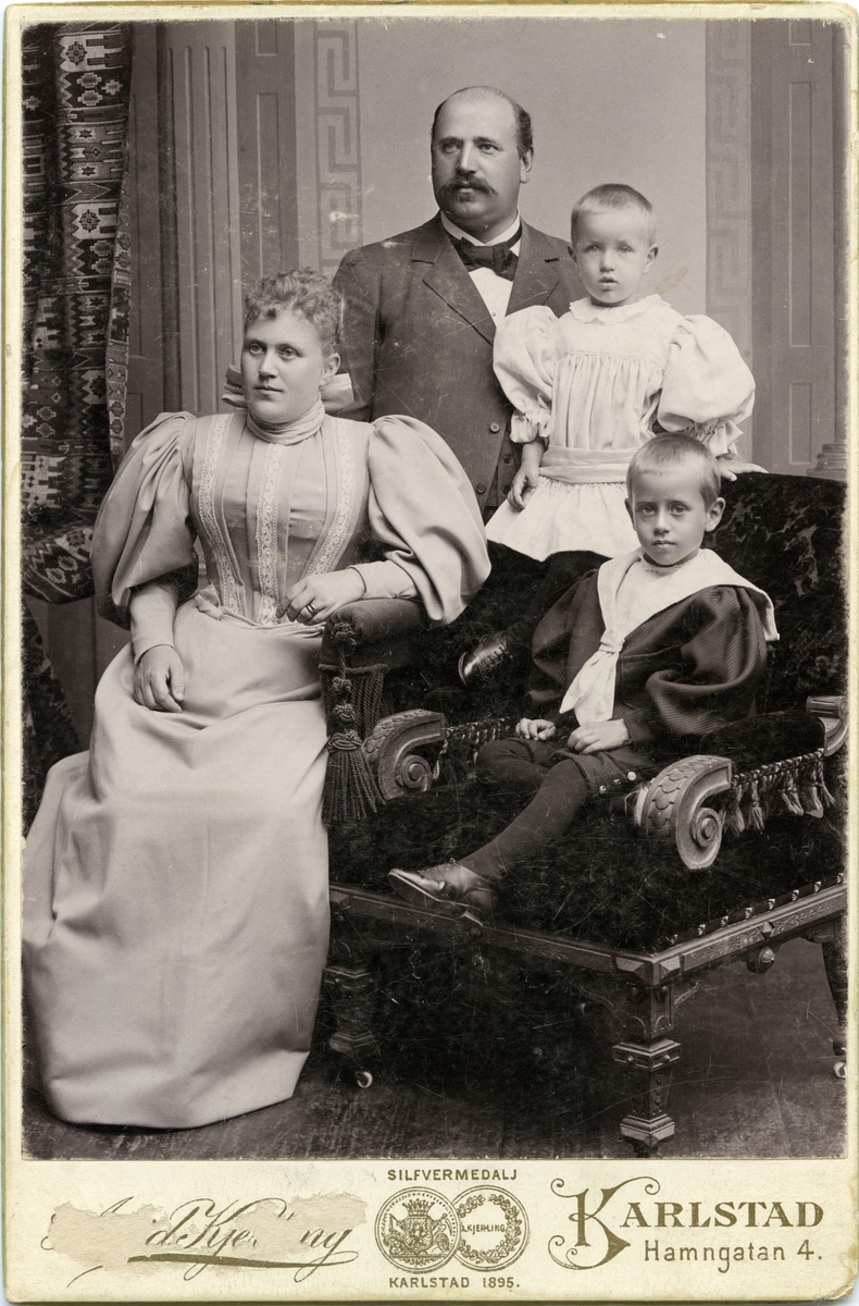Titel: Järnhandlare A. Huzell med familj Karlstad kring sekelskiftet. Barnen är Eskil och Agnar.