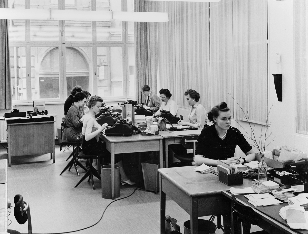 Postgirokontorets Undersökningsavdelning på nedre botten. Felletningen. Fönster åt Mäster Samuelsgatan.