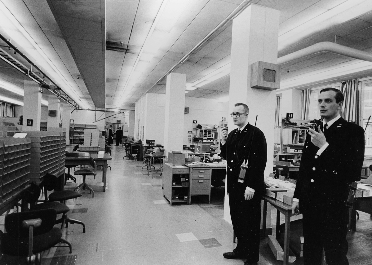 Två väktare från vaktbolaget har sett till att våningen tömts på