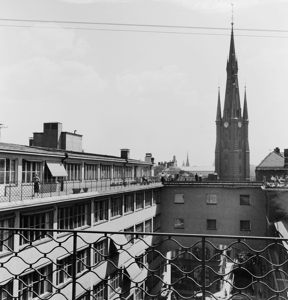 t.v. med Centralposthuset. Till vänster girots lunchrum på 5 trappor.