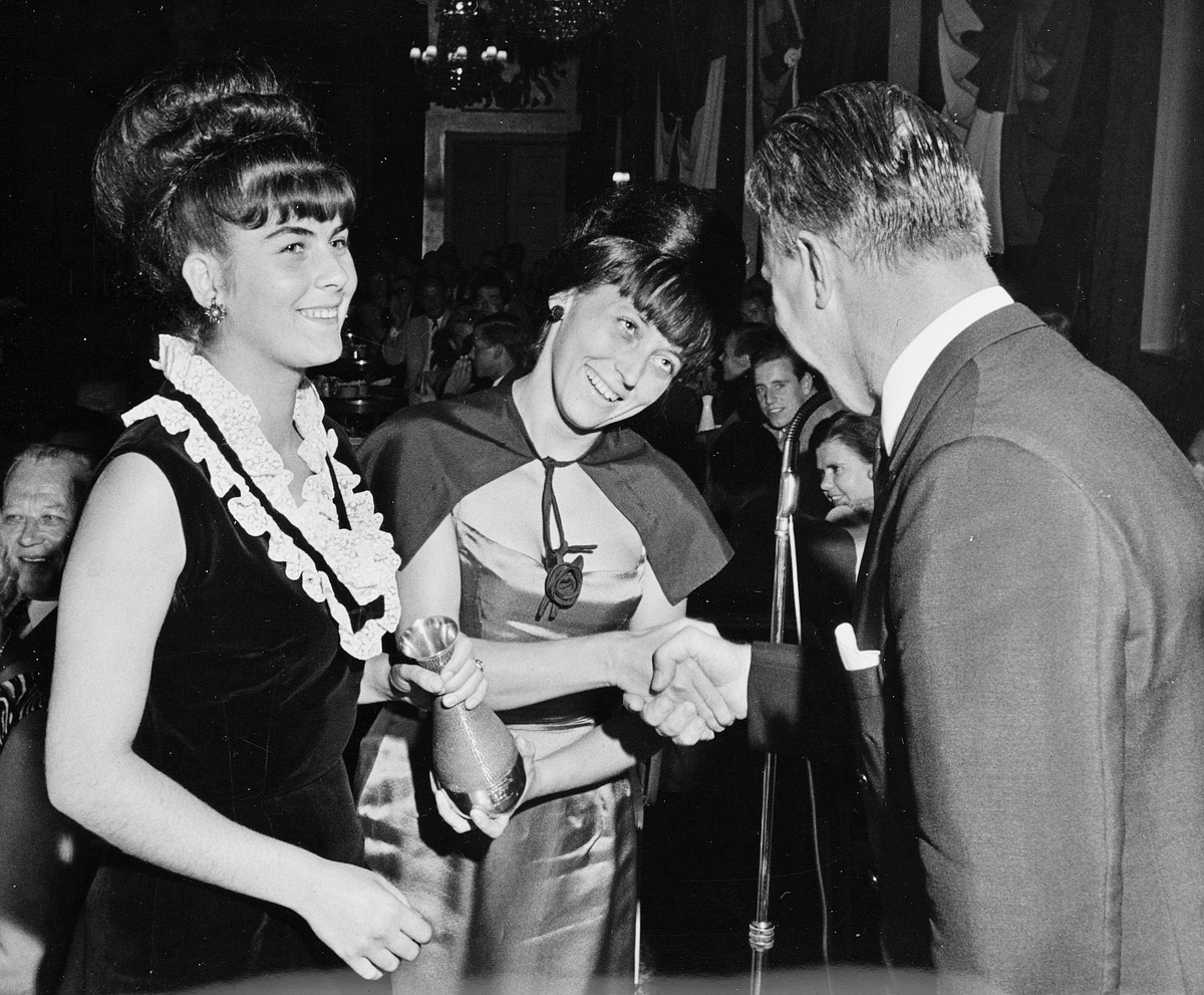 Generaldirektör Nils Hörjel delar ut pris och gratulerar de båda