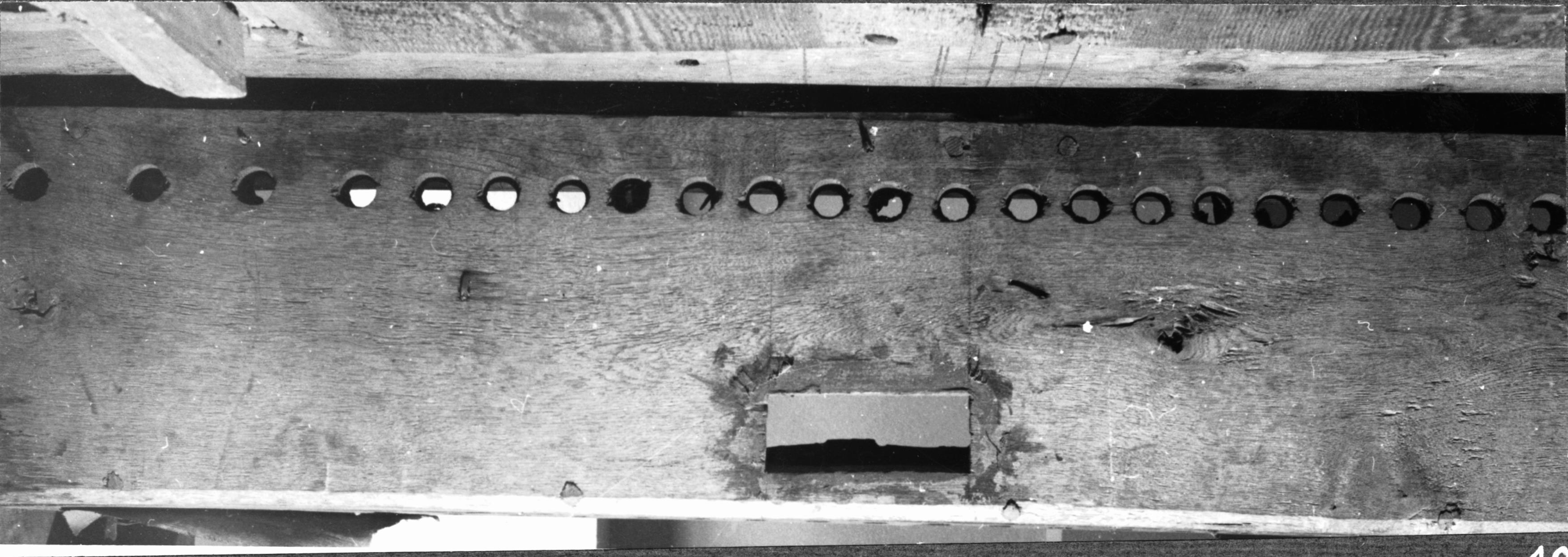 Väderlådans botten med "hål" för förlorad abstraktur till väderlådans spelventiler (1370).